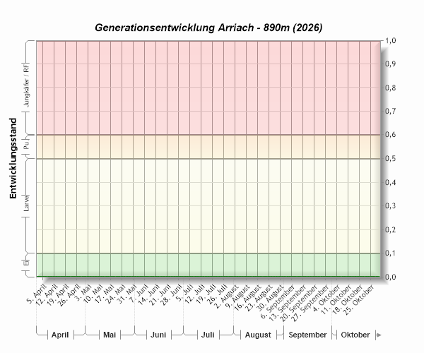 gleichfarbige Linien repräsentieren den minimalen und maximalen Entwicklungsverlauf der jeweiligen Generation