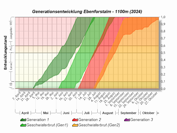 gleichfarbige Linien repräsentieren den minimalen und maximalen Entwicklungsverlauf der jeweiligen Generation
