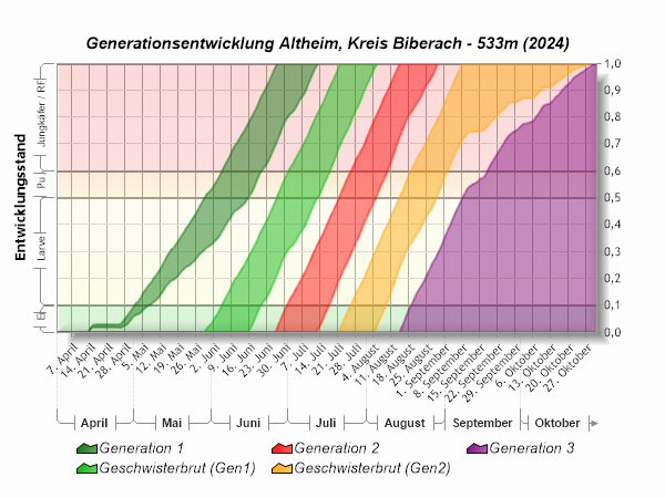 | Hauptflugphase / Befallsbeginn | 14.04.2024 |