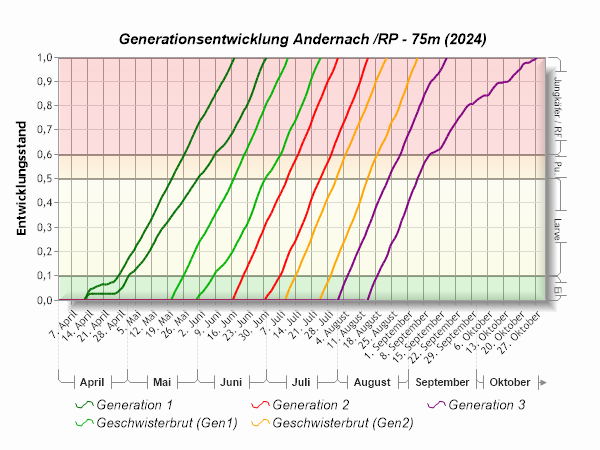| Hauptflugphase / Befallsbeginn | 13.04.2024 |