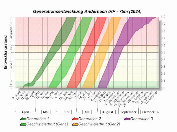 | Hauptflugphase / Befallsbeginn | 13.04.2024 |