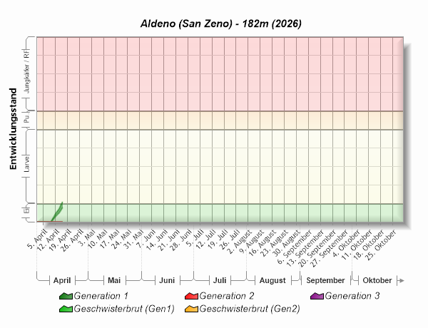 gleichfarbige Linien repräsentieren den minimalen und maximalen Entwicklungsverlauf der jeweiligen Generation